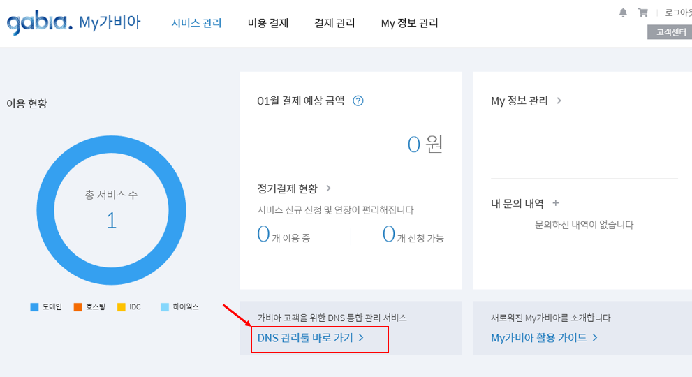 5. 'DNS관리툴 바로가기'로 들어갑니다