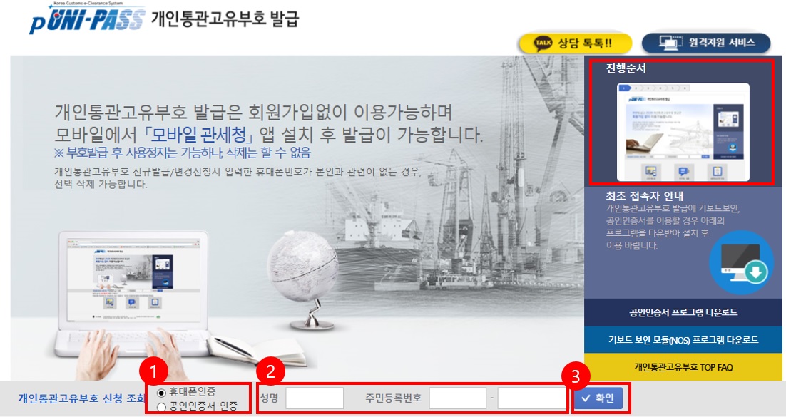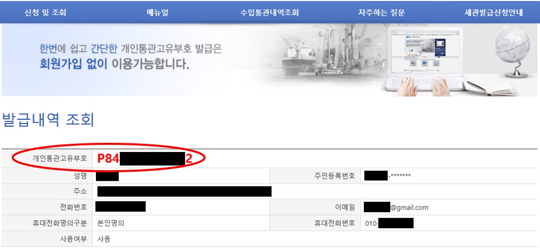 "관세청 개인통관고유부호" 홈페이지에 접속하여 발급받기