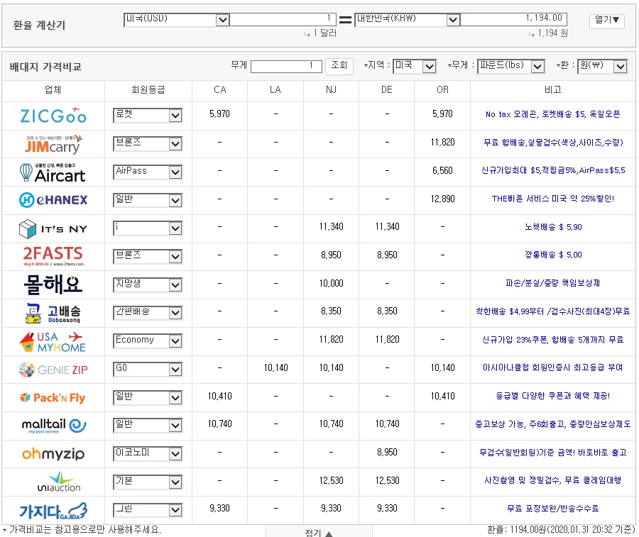 <각종 배대지_출처 : 뽐뿌 해외포럼>