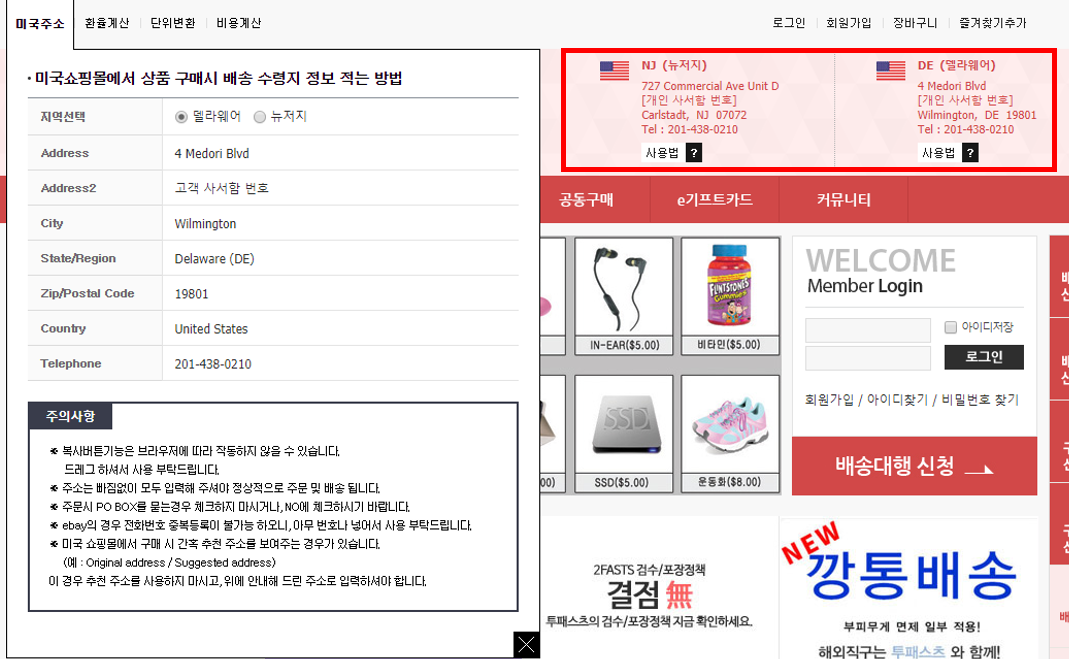 물론 이전될 때 메일이나 공지로 알려주기는 하지만 미처 확인을 못하고 저장되있던 주소로 물품을 보내시는 경우를 몇 번 봤습니다. 이런 경우 정말 해결이 난처하므로 직구하실 때 저장된 배대지 주소를 그대로 사용하지 마시고 홈페이지를 확인하여 주소가 바뀌지 않았는지 필히 확인하시기 바랍니다.